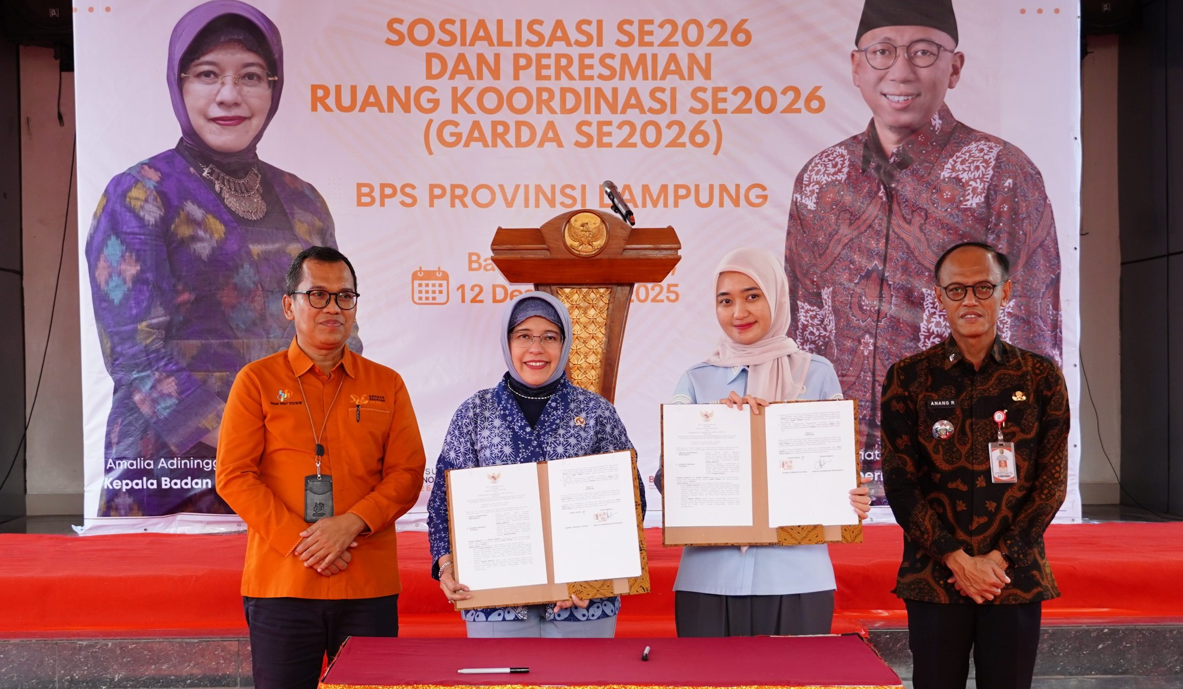 Penandatanganan dilakukan dalam kegiatan Sosialisasi Sensus Ekonomi 2026 serta peresmian Ruang Koordinasi GARDA SE2026 di halaman Kantor BPS Lampung, Jumat (12/12/2025).